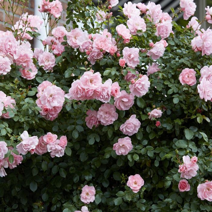 'Bonica' ist eine kräftige Rose, mit einem niedrigen, ausladenden Wuchs und dichten, grünen Blättern. Becherförmig, gefüllte, rosarote Blüten blühen von Sommer bis Herbst in dicken Büscheln. Auch die Hagebutten im Herbst sind ein schöner Anblick und Anziehungspunkt für Vögel.